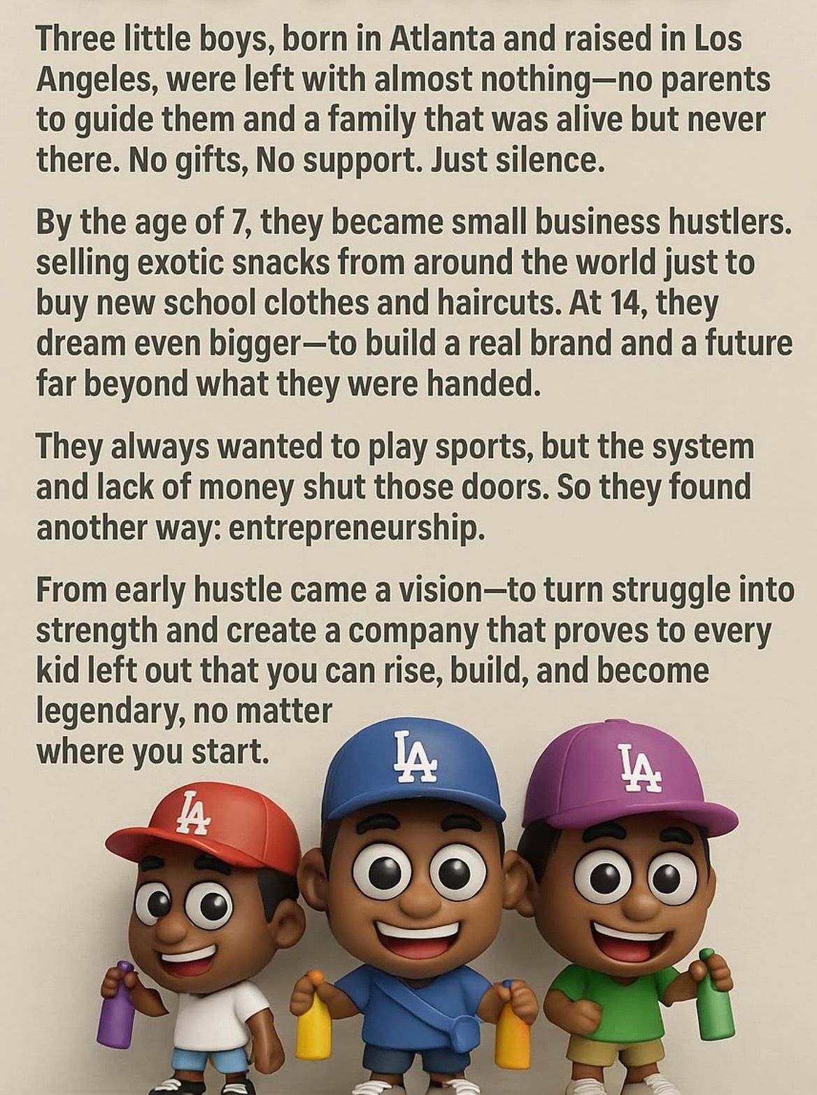 Exotic Boyz was built from the ground up in our mother’s living room kitchen, turning struggle into something bigger. Growing up without support from our biological parents, we found family in each other and in the woman we proudly call Auntie. What started as a way to hustle and survive became a vision to create one of the most unique beverage brands out, fueled by passion, loyalty, and a dream to make it out.